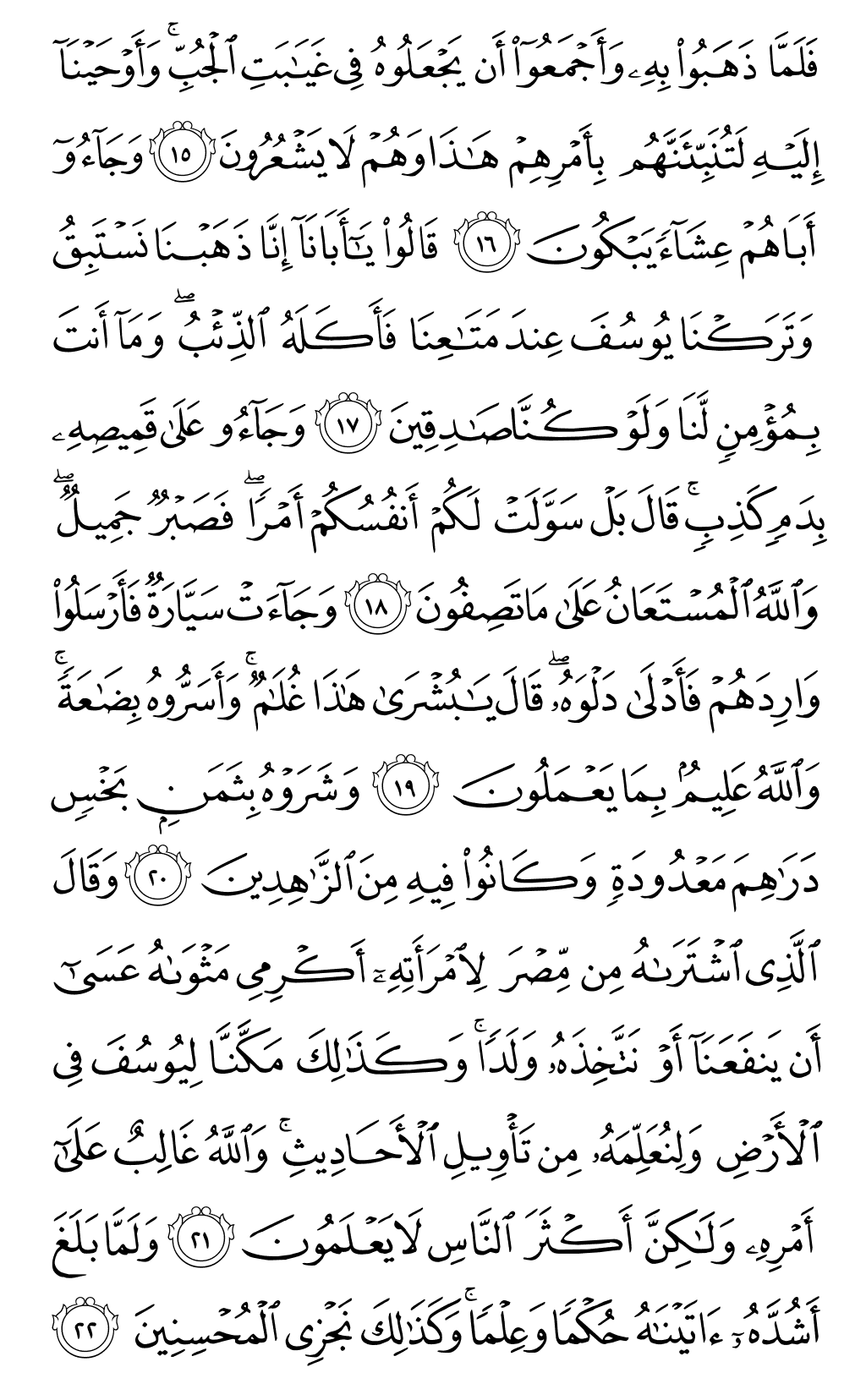 12/Yúsuf-15: Cuando se lo llevaron y se pusieron de acuerdo para echarlo al fondo del aljibe... Y le inspiramos: «¡Ya les recordarás más tarde, sin que te reconozcan, lo que ahora han hecho!»
