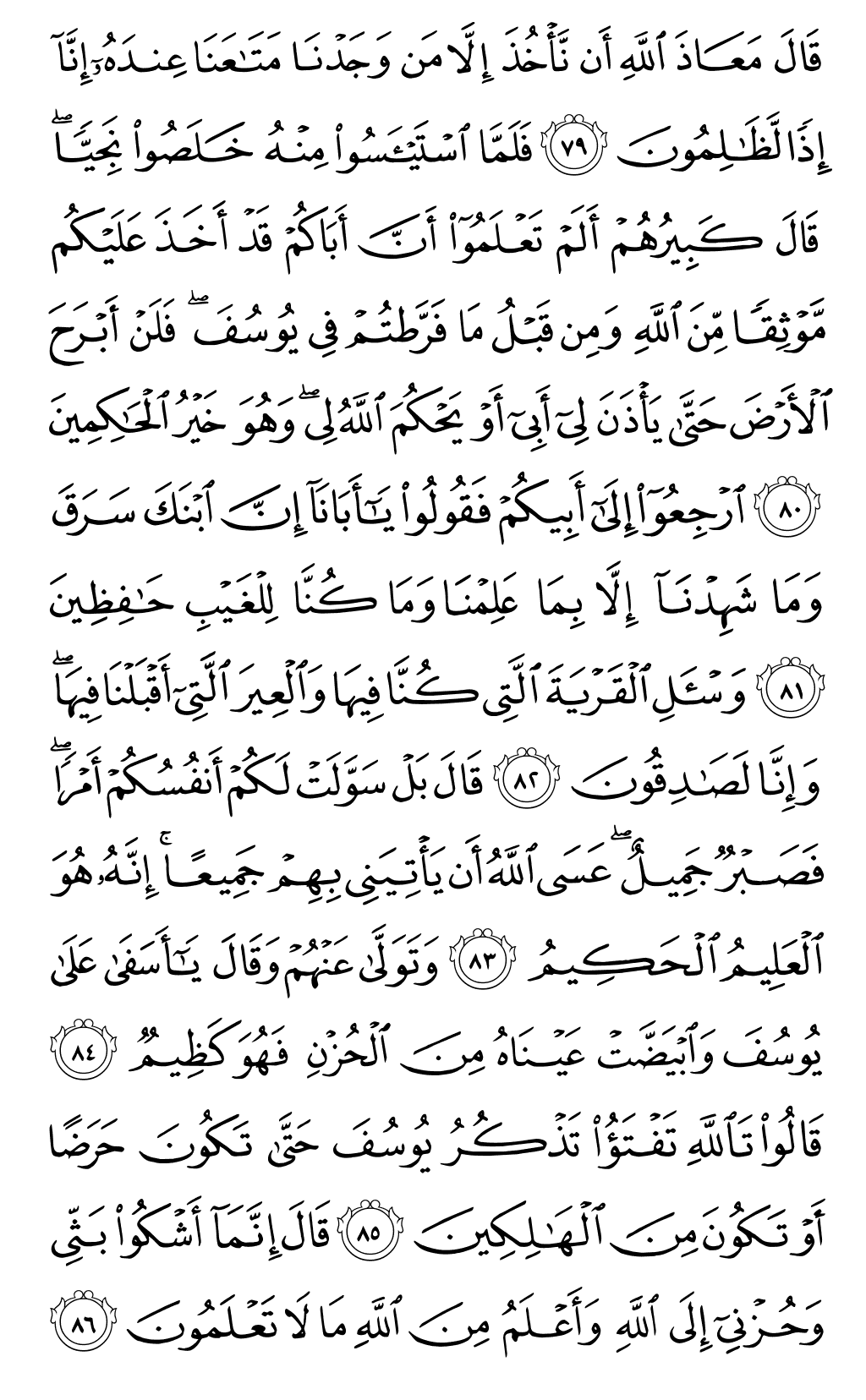 12/Yúsuf-82: Interroga a la ciudad en que nos hallábamos y a la caravana con la cual hemos venido. ¡Sí, decimos la verdad!'»