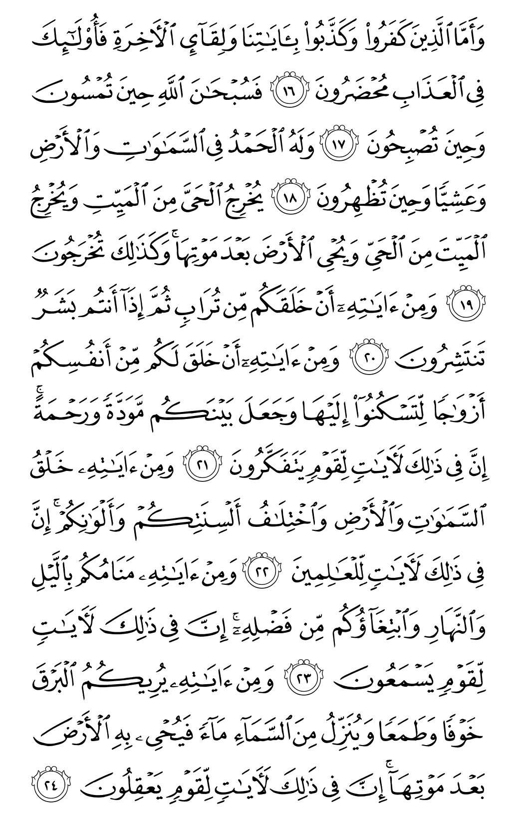 30/Al Rúm-16: pero quienes no hayan creído y hayan desmentido Nuestros signos y la existencia de la otra vida serán entregados al castigo.