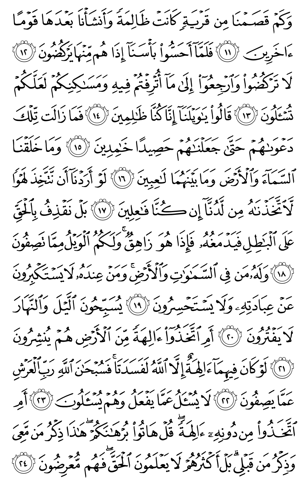21/АЛЬ-АНБИА-15: Таким образом, они не прекращали так вопить (жаловаться) до тех пор, пока Мы их не превратили в безжизненное (мёртвое) жниво.